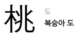 복숭아 도는 한자이다. 도원은 복숭아밭을 뜻한다