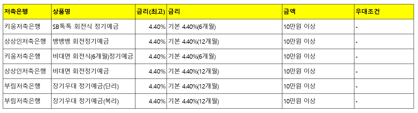 저축은행 정기 예금 금리 BEST 6