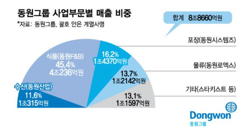 간편식과 유제품 등 다양한 제품을 판매하는 식품 계열사로 동원참치를 제외한 매출만 3조5000억원에 달한다.