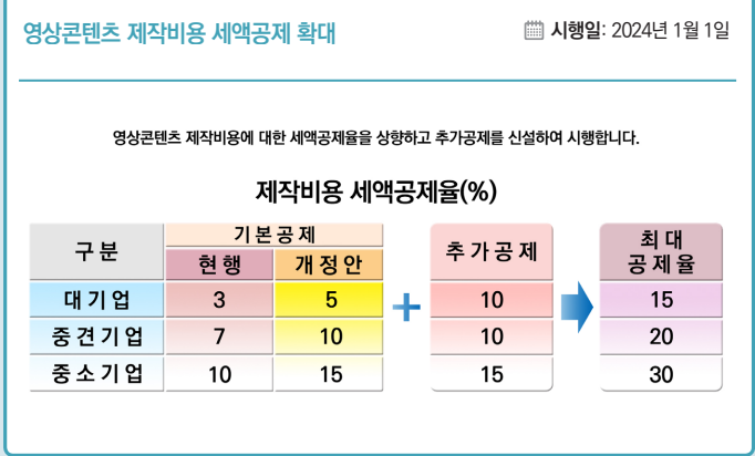 2) 영상콘텐츠 제작비용 세액공제 확대