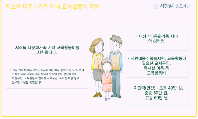 5) 저소득 다문화가족 자녀 교육활동비 지원