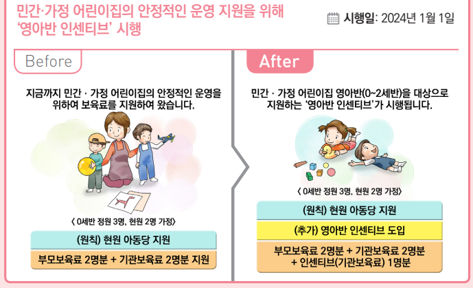 3) 민간·가정 어린이집의 안정적인 운영 지원을 위해 ‘영아반 인센티브’ 시행