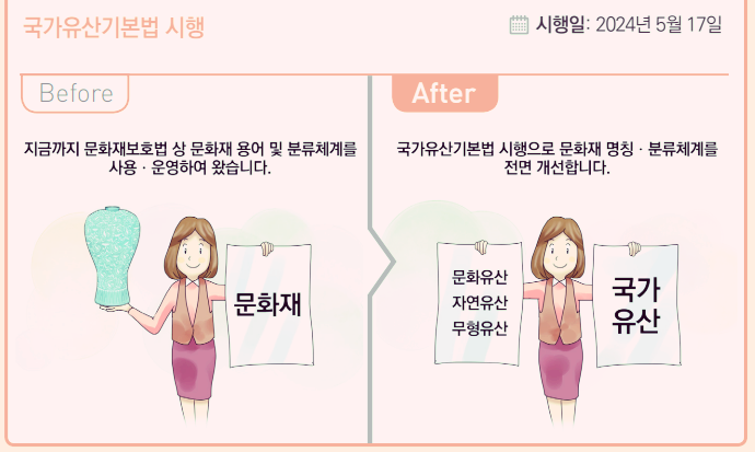 * ‘24년 5월 17일 「국가유산기본법」(‘23.5.16., 제정) 시행
