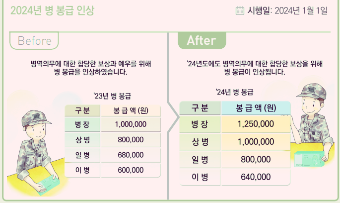 * 병장 기준 ‘23년 월 100만원 → ’24년 월 125만원