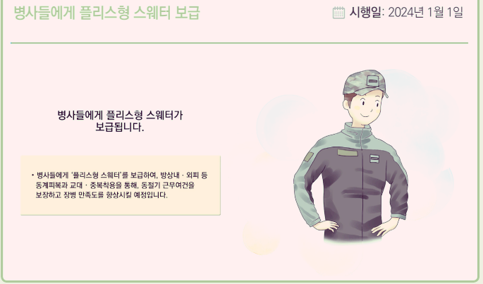 2024년 새해 달리지는 것들 국방,병무 분야입니다.