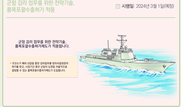 7) 군함 감리 업무를 위한 전략기술, 품목포괄수출허가 적용